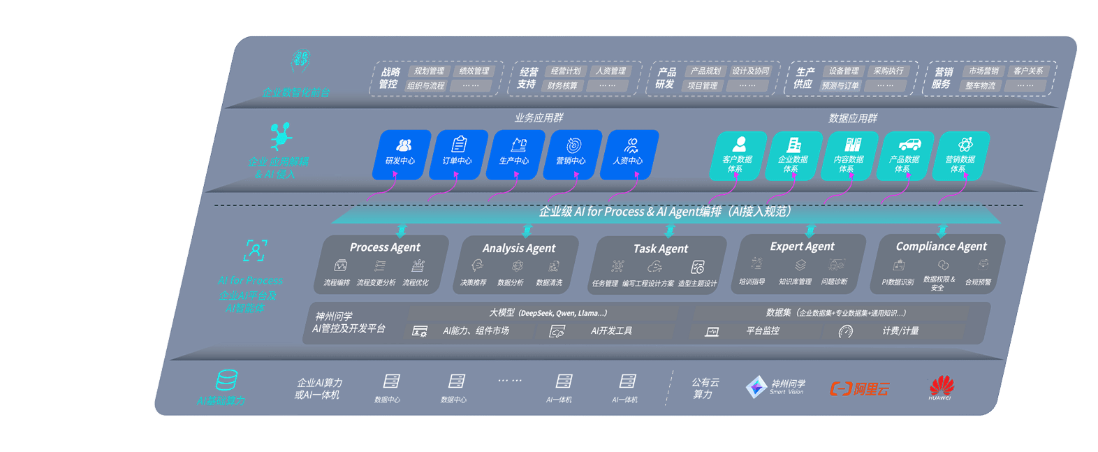 z6尊龙旗舰厅问学智车解决方案是一套基于AI技术的汽车行业智能化系统,,,,覆盖从底层算力到顶层AI应用的全栈方案。。方案由算力层、、模型层和应用层组成:算力层,,,,方案支持多种一体机配置,,具备云端灵活部署、、多云适配以及动态优化计算资源的能力;模型层,,,z6尊龙旗舰厅问学平台版提供了企业级AI应用一站式构建与管理平台,,,支持基于后训练强化技术的汽车企业专属模型的训练、、、、评测和运营;应用层,,,,z6尊龙旗舰厅问学DeepSeek版提供包括超级员工、、、、智能招采、、、智能营销、、、、智能客服、、、AI for BI等一系列解决方案,,,,可助力汽车行业实现数字化转型,,让管理更智能、、响应更敏捷。。