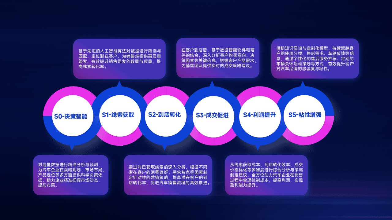 通过拓宽潜在客户来源、、、、优化线索分配并提高到店转化率,,以增强销售效率。。。同时,,,,利用线索数据不断优化分析模型,,有效提升转化率,,,,扩大营销影响力。。